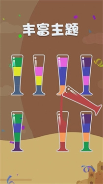 在给液体分类倒水的过程里,大家能收获满满的快乐。玩家的目标很简单,只要把相同颜色的液体倒进同一个容器,就能完成挑战任务。每个关卡的颜色分类数量各不相同,这款游戏玩起来特别容易让人上瘾,还能带来更多轻松减压的体验。