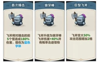 骑士方面则推荐强化首次撞击、狼牙棒与飞斧技能,增强控制范围与清场效率。