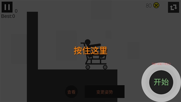 按住“开始”按钮进行蓄力,再次点击即可发射火柴人。