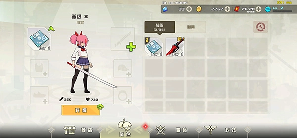 5、也能进入角色界面,给人物升级,增强基础属性,让后面的关卡更容易通过。