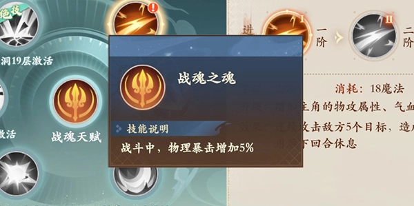 - 连环斩:对单一目标发起3次攻击,每次伤害结果比前一次提升12%,技能冷却时长为3回合,使用后需休息1回合。该技能达到二阶和三阶时,分别会额外增加10%的伤害结果。