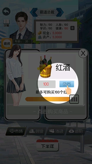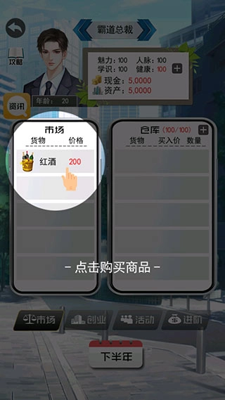 4、点击左侧的市场商品即可进行购买,这里我们点击红酒。