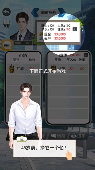 11、掌握好上述流程后,就能正式开启游戏之旅了,咱们的目标是在45岁之前,赚够一个亿。