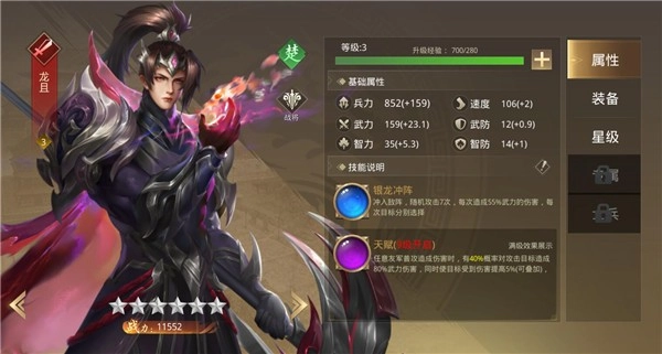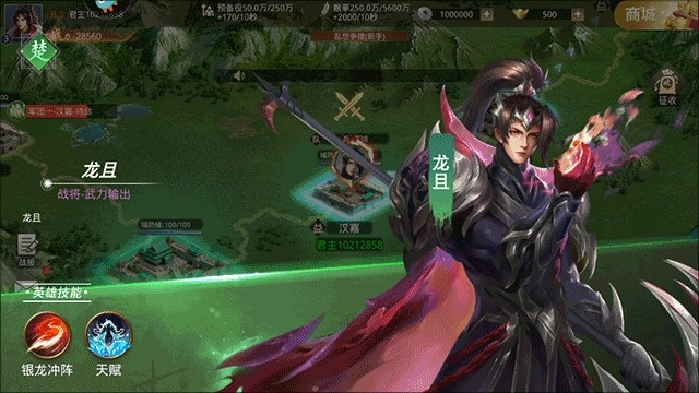 1、龙且:楚国战将,战力11552,定位战士,技能分为银龙冲阵
