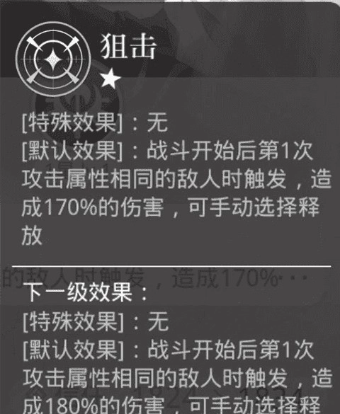 (4)狙击:遇到同属性触发,造成单次百分比伤害,无次数触发限制。