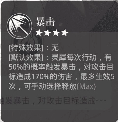 (3)暴击:单次百分比暴击,概率触发,一局最多触发5次。
