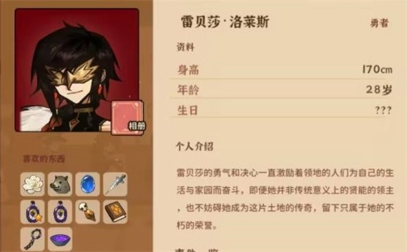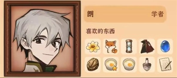 7、朗,喜欢的物品有金色兰花、金色沙漏、骑士长袍、小狐狸、蓝色的宝石蛋、史前化石、奶油焗蛋、鬼蘑菇药剂、《巨龙图志》