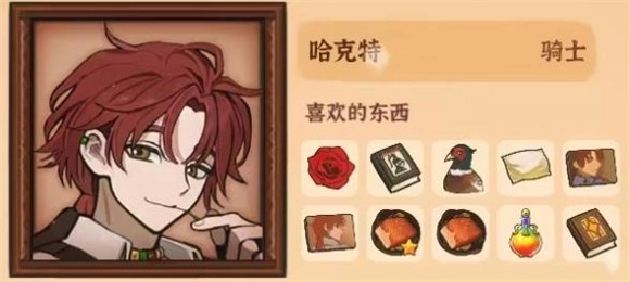 10、哈克特,喜欢的物品有红玫瑰、《优秀骑士手册》、便携枕头、野鸡、哈克特肖像、香喷喷烤鱼、人类的知识、《斗鸡八法》