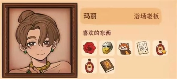 13、玛丽,喜欢的物品有红玫瑰、唱诗班乐谱集、小熊猫、金面具、香醇野莓酒、《掷骰秘诀》