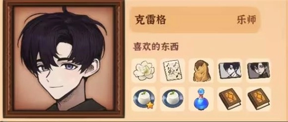 12、克雷格,喜欢的物品有茉莉、乐谱集、土拨鼠、克雷格肖像、马奶布丁、隐形药水、《黑色谜语书》、《红色谜语书》