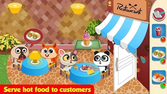 玩家要为光顾咖啡店的小动物们准备美味的食物,游戏里的角色都十分可爱。在游戏中,玩家需要帮助小兔子把森林里的小餐厅打理好,热情地接待小动物们,以此获得它们的认可。游戏里的食物很吸引人,得由玩家去解锁并烹饪呢。