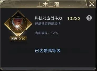城池发展优先研究,可以减少基础建筑的建造时间,加快资源生产和打野速度等。