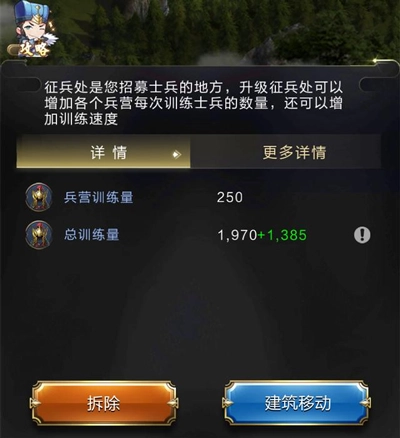 【征兵处】作为功能建筑实力不俗,能够增加训练部队的数量并加快训练速度。若要进行大规模“暴兵”,提前提升【征兵处】的数量与等级,是提高训练效率的有效途径。该建筑最多可建造8个,其等级上限由王城等级决定。