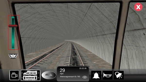 7、调整左侧的杆可以控制火车进行移动, 停止。